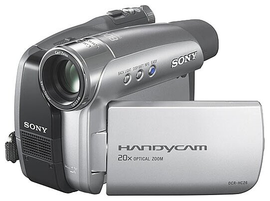 MiniDV, 1/6", 1CCD, zoom 20x/800x, color viewfinder, 113x65x79 mm, 360 g