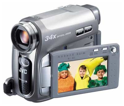 MiniDV, 1/6, 1CCD, photo mode, zoom 34x/800x, color viewfinder, MMC, SD, 114x61x94 mm, 410 g