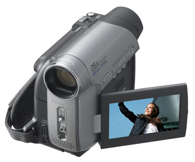 MiniDV, 1CCD, photo mode, zoom 26x/1200x, color viewfinder, MMC, MS, SD, 105x53x93 mm, 430 g