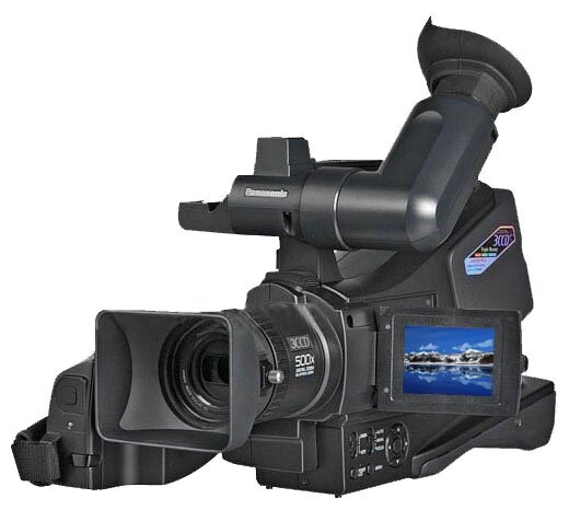 MiniDV, 1/6", 3CCD, zoom 10x/500x, color viewfinder, 432x216x225 mm, 2000 g