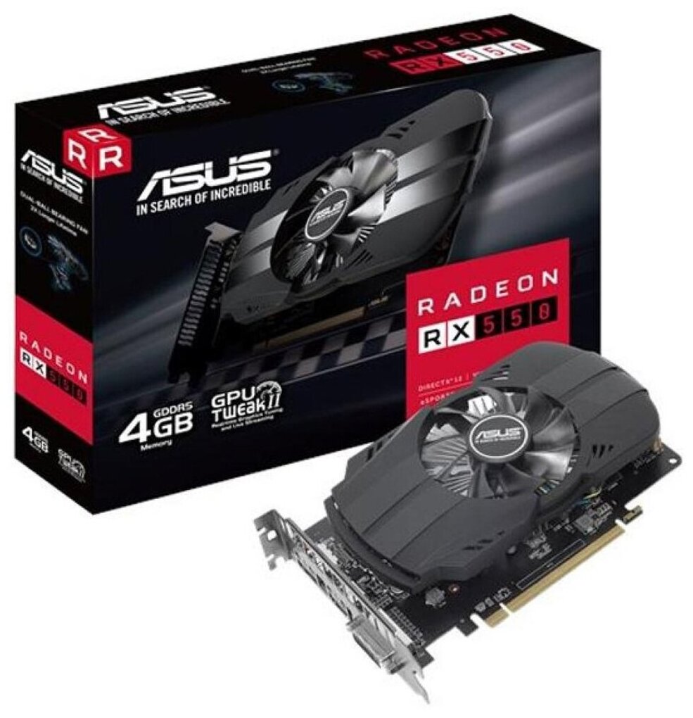 Graphics card name: AMD Radeon RX 550, video memory size: 4 GB, graphics card manufacturer: AMD, product line: Radeon, memory type: GDDR5, memory bus width: 128 bit, PCI Express version: 3.0, Number of HDMI outputs: 1, DisplayPort output