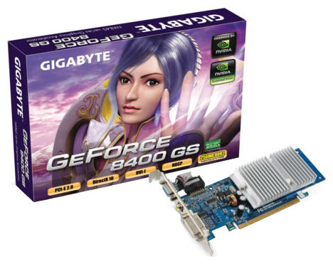 Graphics card name: NVIDIA GeForce 8400 GS, video memory size: less than 2 GB, graphics card manufacturer: NVIDIA, product line: GeForce, memory type: GDDR2, memory bus width: 64 bit, PCI Express version: 2.0