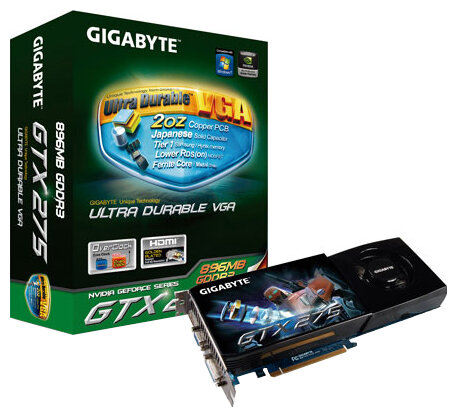 Graphics card name: NVIDIA GeForce GTX 275, video memory size: less than 2 GB, graphics card manufacturer: NVIDIA, product line: GeForce, memory type: GDDR3, memory bus width: 448 bit, PCI Express version: 2.0