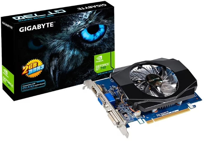 Video card name: NVIDIA GeForce GT 730, video memory size: 2 GB, video card developer: NVIDIA, product line: GeForce, memory type: GDDR5, memory bus width: 64 bit, gaming, PCI Express version: 2.0, Number of HDMI outputs: 1