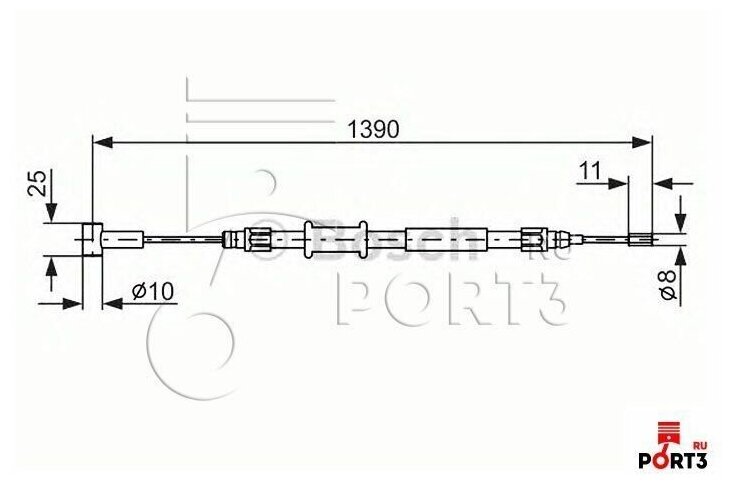 Parking brake cable rear Bosch 1987482213 for Citroen Jumper, Fiat Ducato, Peugeot Boxer