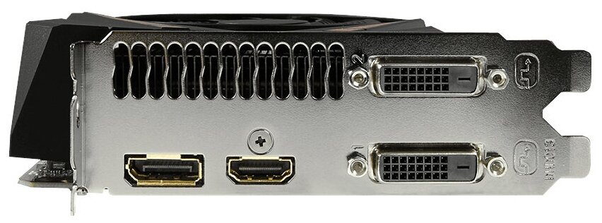 DVI out x 2, DisplayPort out, HDMI out