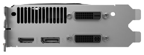 DVI out x 2, DisplayPort out, HDMI out