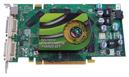 Graphics card name: NVIDIA GeForce 7950 GT, video memory size: less than 2 GB, graphics card manufacturer: NVIDIA, product line: GeForce, memory type: GDDR3, memory bus width: 256 bit