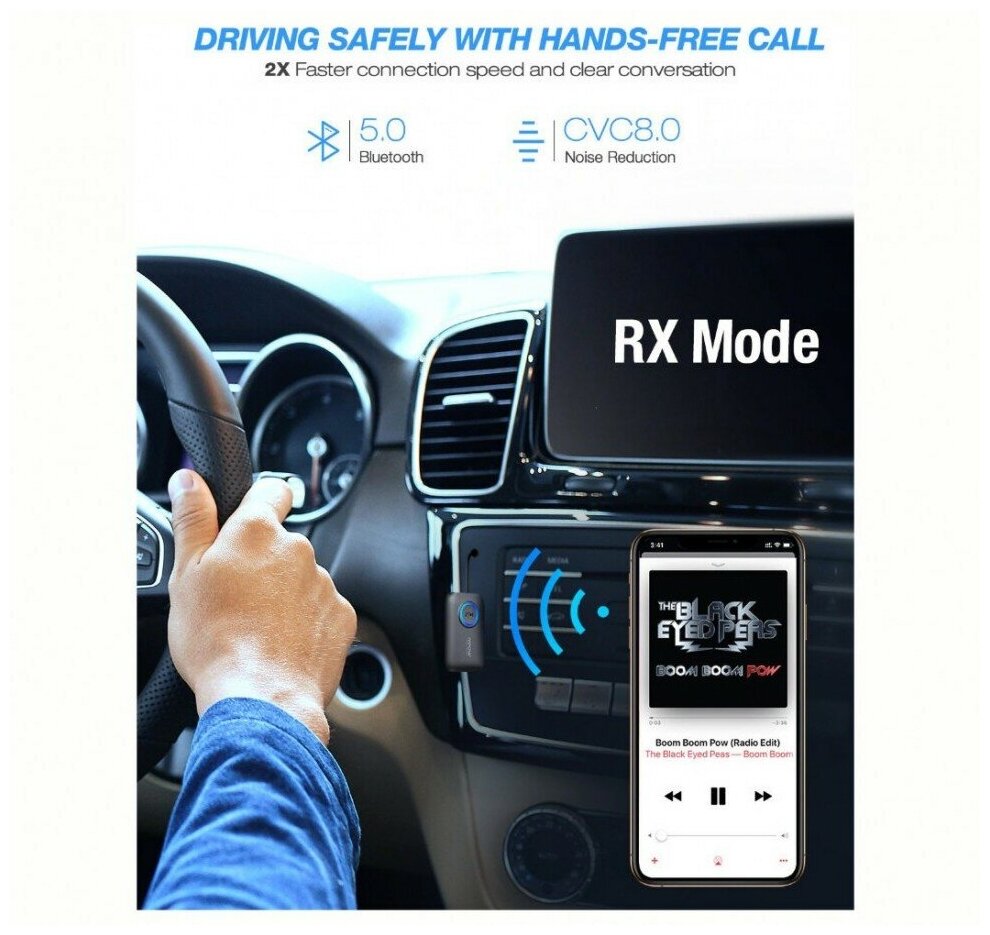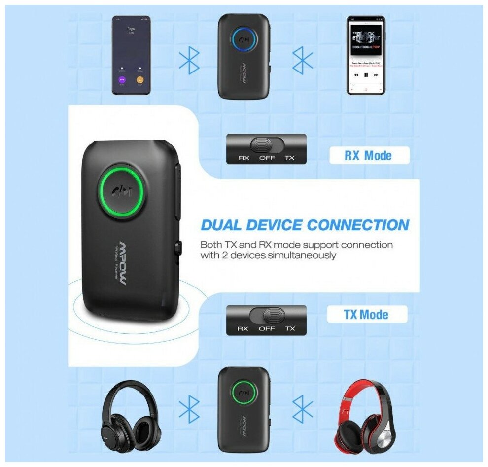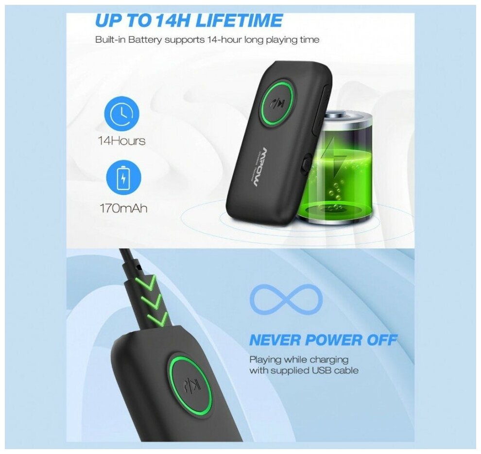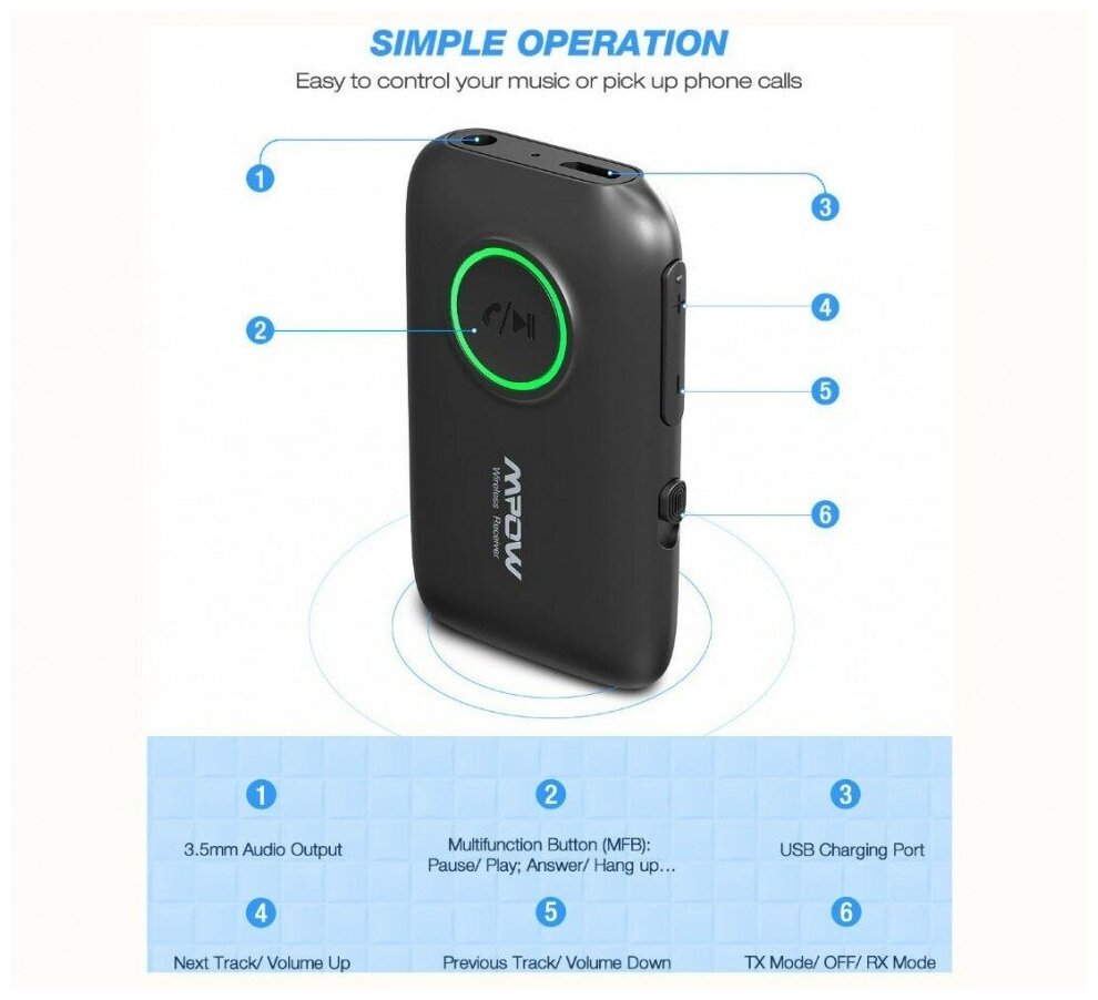 Bluetooth Adapter MPOW BH390A 2 in 1 Receiver and Transmitter with AUX Cable Black MPBH390AB