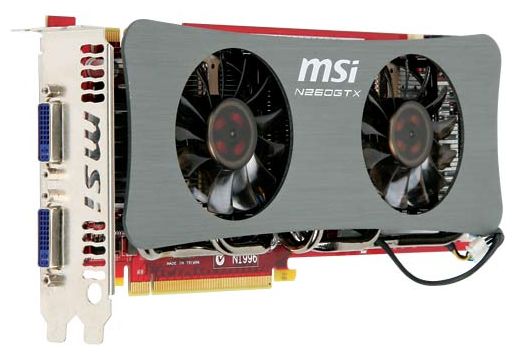 Graphics card name: NVIDIA GeForce GTX 260, video memory size: less than 2 GB, graphics card manufacturer: NVIDIA, product line: GeForce, memory type: GDDR3, memory bus width: 448 bit, PCI Express version: 2.0
