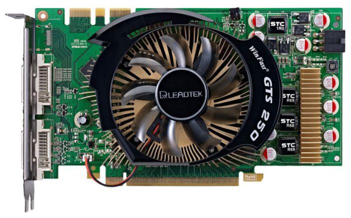 Graphics card name: NVIDIA GeForce GTS 250, video memory size: less than 2 GB, graphics card manufacturer: NVIDIA, product line: GeForce, memory type: GDDR3, memory bus width: 256 bit, PCI Express version: 2.0