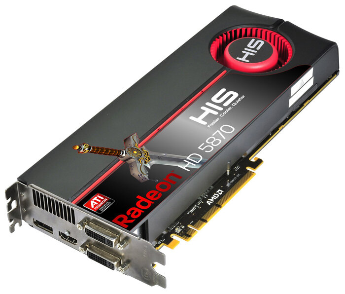 Graphics card name: ATI Radeon HD 5870, video memory size: less than 2 GB, graphics card manufacturer: AMD, product line: Radeon, memory type: GDDR5, memory bus width: 256 bit, PCI Express version: 2.1, DisplayPort output