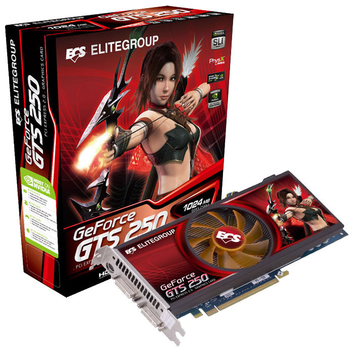 Graphics card name: NVIDIA GeForce GTS 250, video memory size: less than 2 GB, graphics card manufacturer: NVIDIA, product line: GeForce, memory type: GDDR3, memory bus width: 256 bit, PCI Express version: 2.0