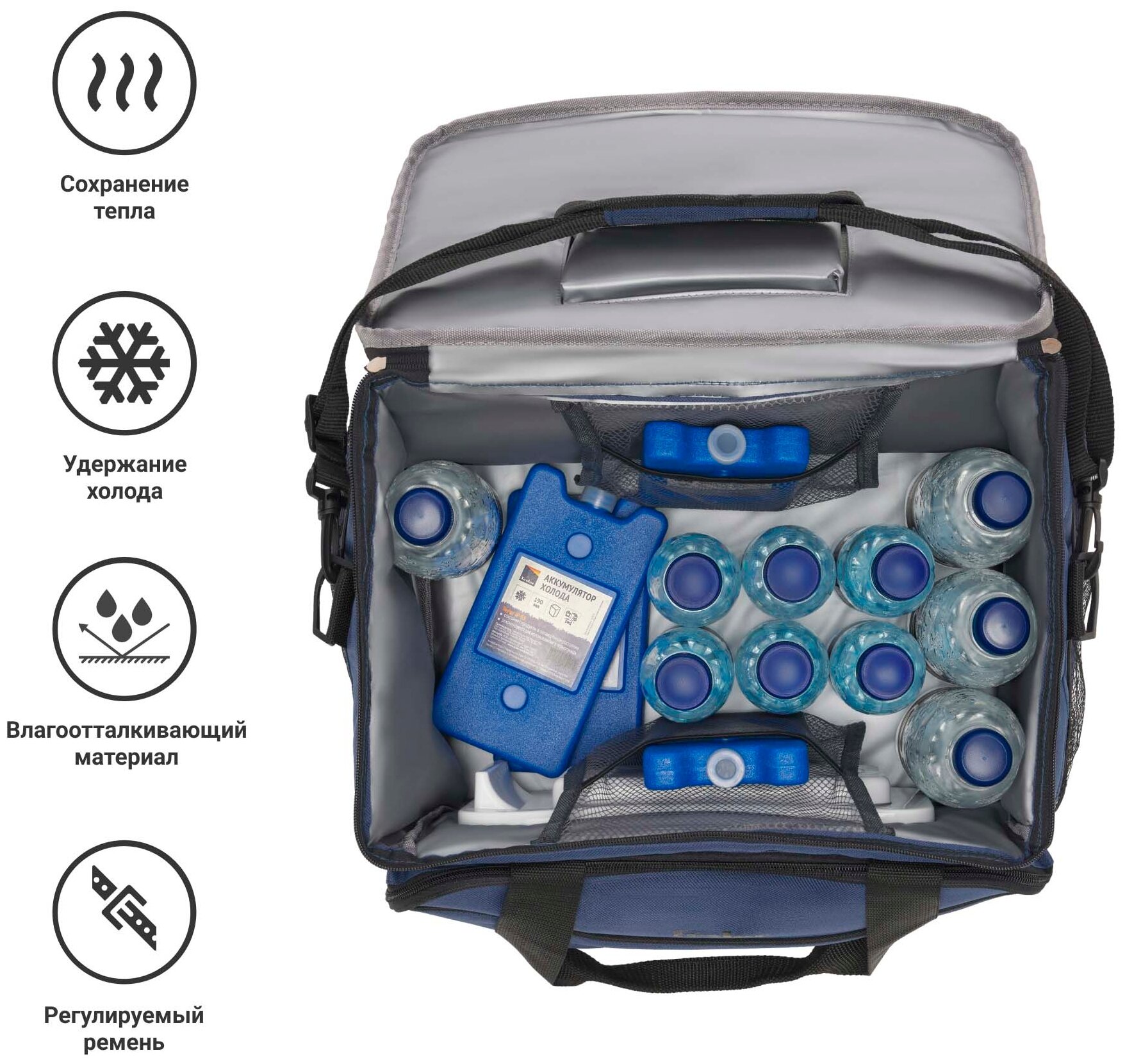 Type: bag, operating principle: thermoelectric, power supply: cigarette lighter, voltage: 12 V, volume: 30 l, features: carrying handles, height: 28 cm, width: 39 cm, depth: 33 cm