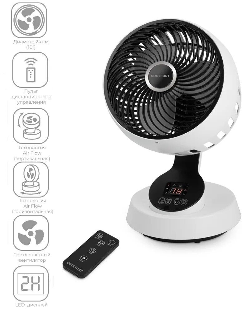 Type: desktop, operating mechanism: axial, power: 40 W, power supply: mains, control: electronic, additional functions: tilt adjustment, rotation adjustment, features: display, remote control, timer, blade diameter