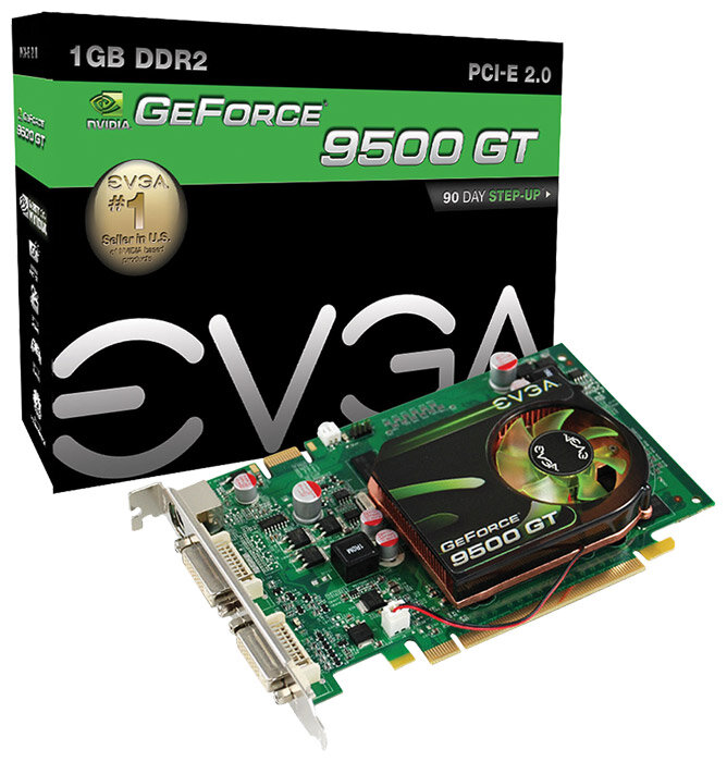 Graphics card name: NVIDIA GeForce 9500 GT, video memory size: less than 2 GB, graphics card manufacturer: NVIDIA, product line: GeForce, memory type: GDDR2, memory bus width: 128 bit, PCI Express version: 2.0