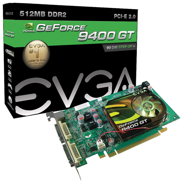 Graphics card name: NVIDIA GeForce 9400 GT, video memory size: less than 2 GB, graphics card manufacturer: NVIDIA, product line: GeForce, memory type: GDDR2, memory bus width: 128 bit, PCI Express version: 2.0