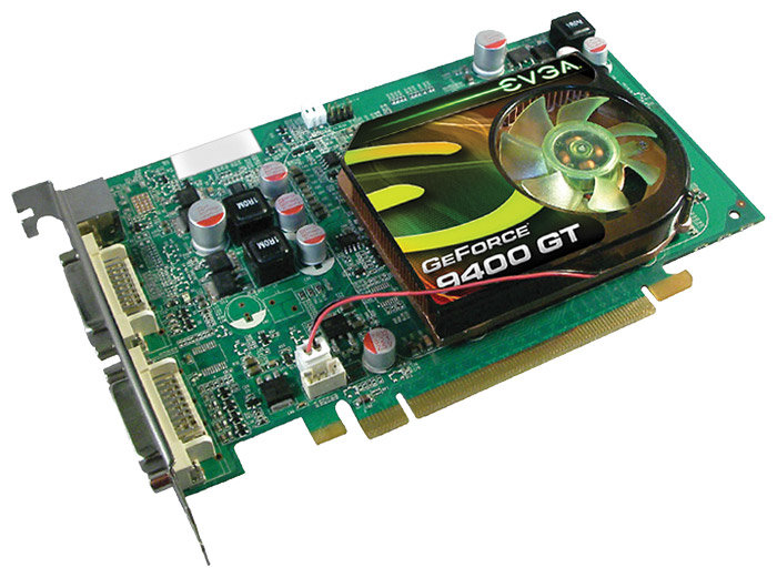 Graphics card name: NVIDIA GeForce 9400 GT, video memory size: less than 2 GB, graphics card manufacturer: NVIDIA, product line: GeForce, memory type: GDDR2, memory bus width: 128 bit, PCI Express version: 2.0