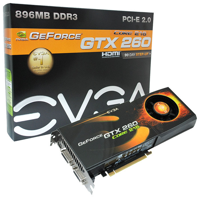 Graphics card name: NVIDIA GeForce GTX 260, video memory size: less than 2 GB, graphics card manufacturer: NVIDIA, product line: GeForce, memory type: GDDR3, memory bus width: 448 bit, PCI Express version: 2.0