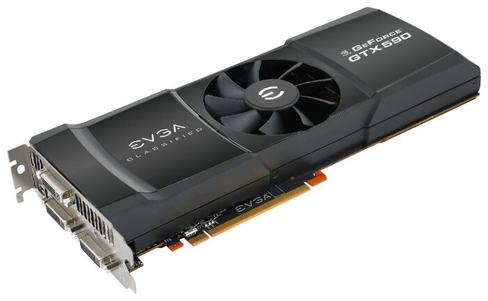Graphics card name: NVIDIA GeForce GTX 590, video memory size: 3 GB, graphics card manufacturer: NVIDIA, product line: GeForce, memory type: GDDR5, memory bus width: 768 bit, PCI Express version: 2.0