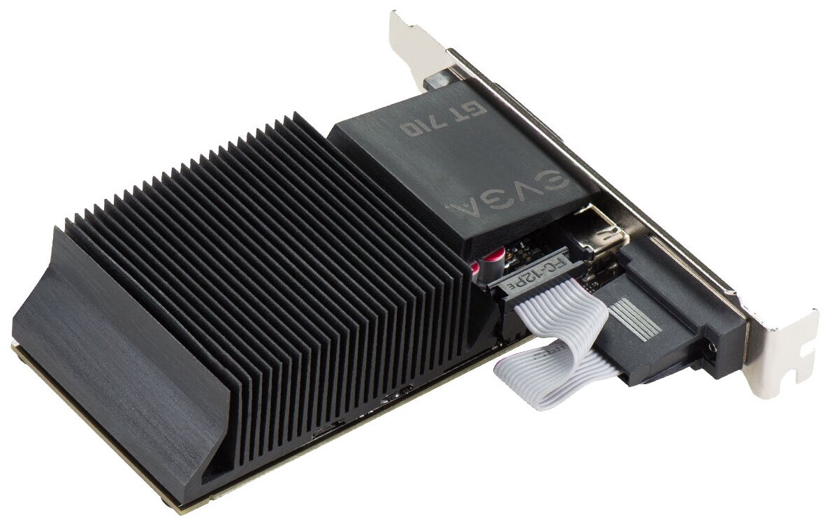 Graphics card name: NVIDIA GeForce GT 710, video memory size: 2 GB, graphics card developer: NVIDIA, product line: GeForce, memory type: GDDR3, memory bus width: 64 bit, PCI Express version: 2.0, Number of HDMI outputs: 1