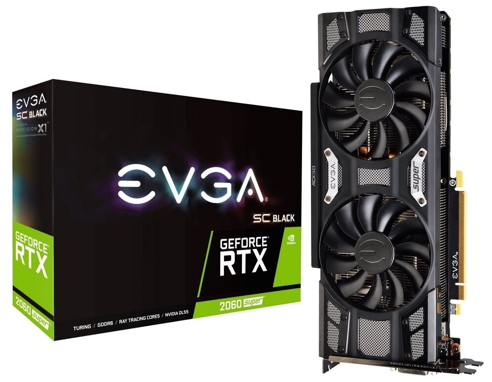 Graphics card name: NVIDIA GeForce RTX 2060 SUPER, video memory size: 8 GB, graphics card manufacturer: NVIDIA, product line: GeForce, memory type: GDDR6, memory bus width: 256 bit, gaming, PCI Express version: 3.0, DisplayPort output, ray tracing support