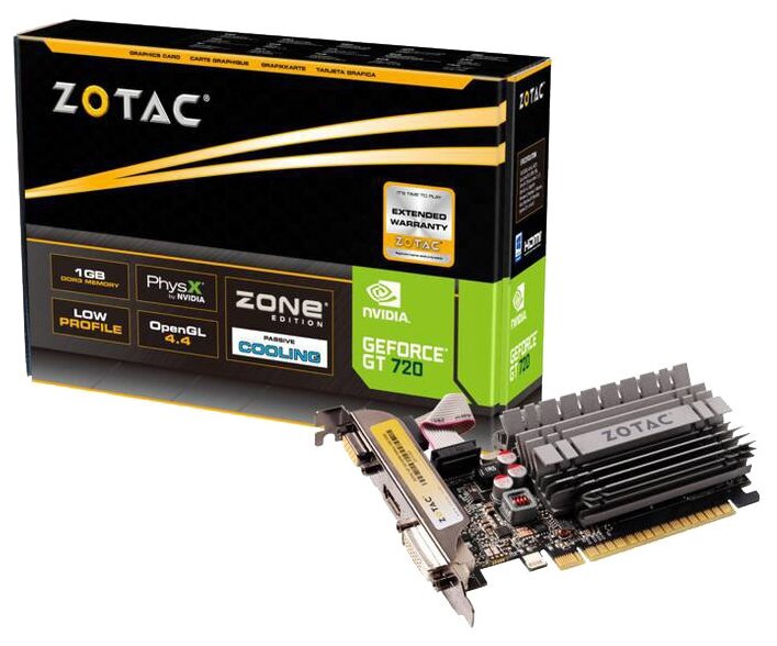 ZOTAC GeForce GT 720 797Mhz PCI-E 2.0 1024Mb 5010Mhz 64 bit DVI HDMI HDCP Silent