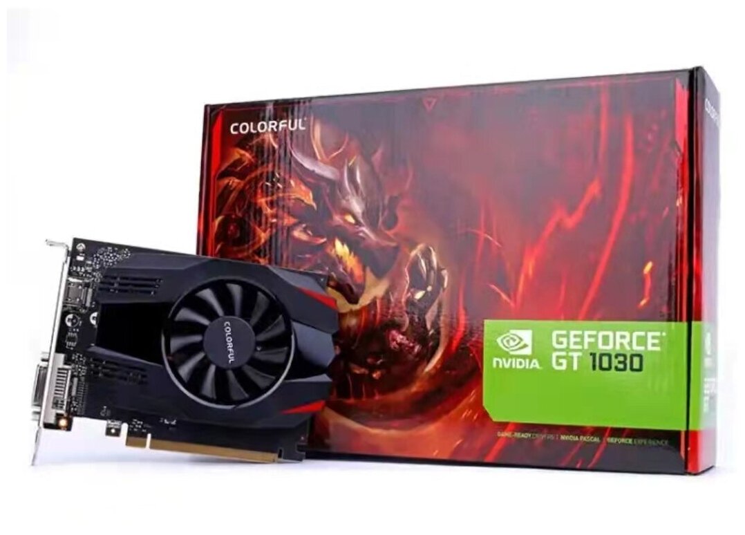 Graphics card name: NVIDIA GeForce GT 1030, video memory size: 2 GB, graphics card developer: NVIDIA, product line: GeForce, memory type: GDDR4, memory bus width: 64 bit