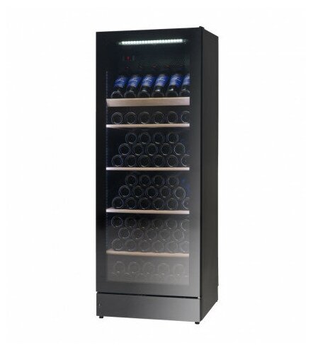 Wine cabinet type: multi-temperature, height: 155 cm, width: 59.50 cm, depth: 59.50 cm, wine cabinet capacity, bottles: 147, number of chambers: 1, energy efficiency class: B, cabinet color: black