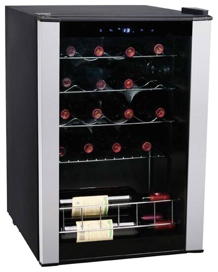 Wine cabinet type: single temperature, height: 64 cm, width: 43 cm, depth: 48 cm, wine cabinet capacity, bottles: 20, number of chambers: 1, compressor type: standard, housing color: black