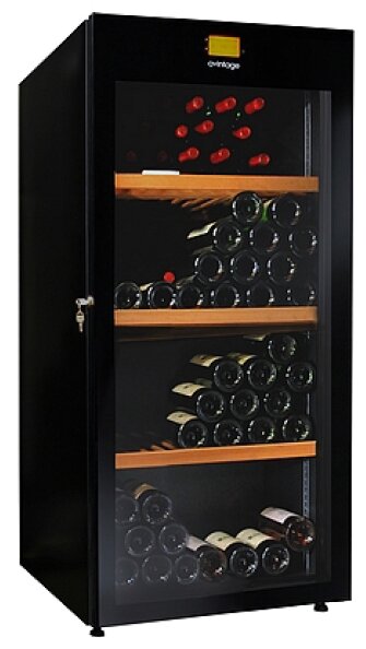 Wine cabinet type: single temperature, height: 145 cm, width: 62 cm, depth: 71 cm, wine cabinet capacity, bottles: 178, number of chambers: 1, energy efficiency class: B, compressor type: standard, cabinet color: black