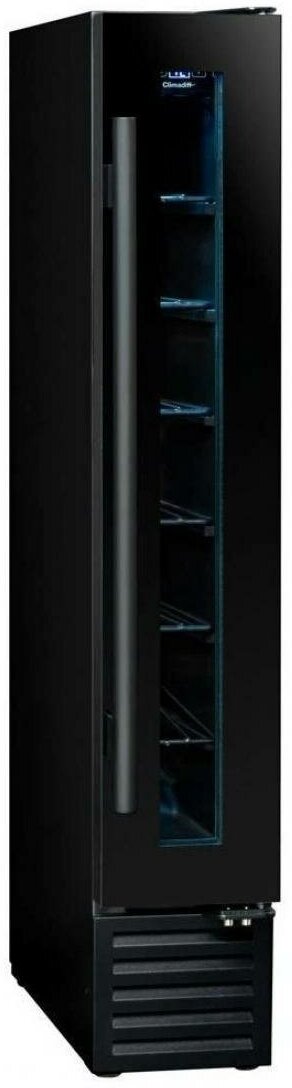 Wine cabinet type: single temperature, height: 86.50 cm, width: 14.50 cm, depth: 47.50 cm, wine cabinet capacity, bottles: 7, number of chambers: 1, energy efficiency class: G, cabinet color: black