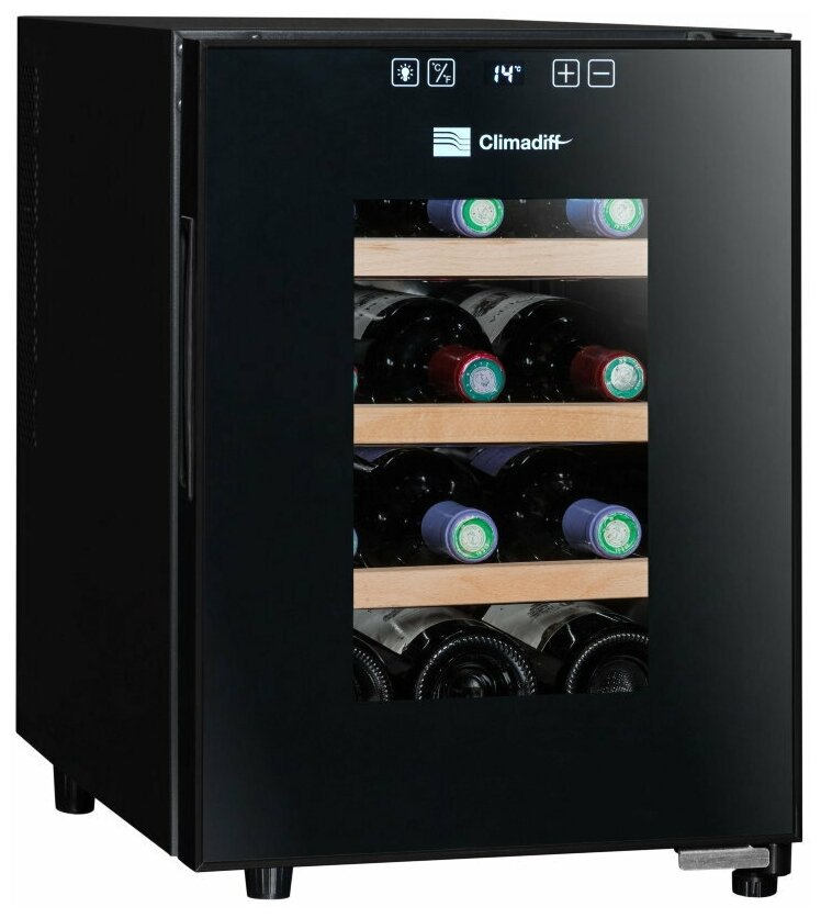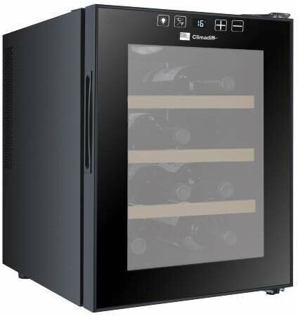 Wine cabinet type: single temperature, height: 51.50 cm, width: 38.50 cm, depth: 52.50 cm, wine cabinet capacity, bottles: 12, number of chambers: 1, energy efficiency class: G, cabinet color: black