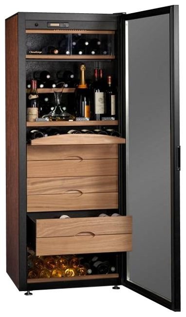 Wine cabinet type: single temperature, height: 182 cm, width: 71.50 cm, depth: 69 cm, wine cabinet capacity, bottles: 266, number of chambers: 1, compressor type: standard, housing color: woodgrain