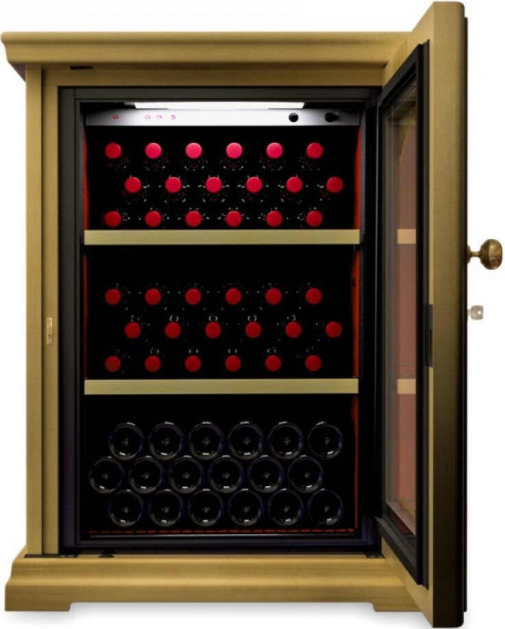 Wine cabinet type: single temperature, height: 100 cm, width: 76 cm, depth: 64 cm, wine cabinet capacity, bottles: 50, number of chambers: 1, compressor type: standard, case color: woodgrain