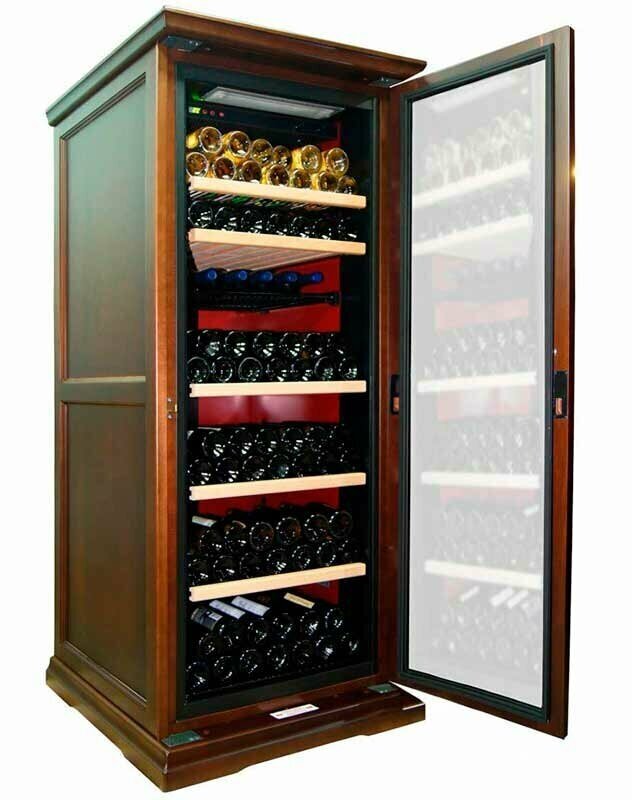 Wine cabinet type: single temperature, height: 175 cm, width: 76 cm, depth: 64 cm, wine cabinet capacity, bottles: 112, number of chambers: 1, compressor type: standard, case color: woodgrain