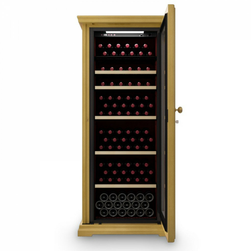 Wine cabinet type: single temperature, height: 175 cm, width: 76 cm, depth: 64 cm, wine cabinet capacity, bottles: 112, number of chambers: 1, compressor type: standard, case color: woodgrain