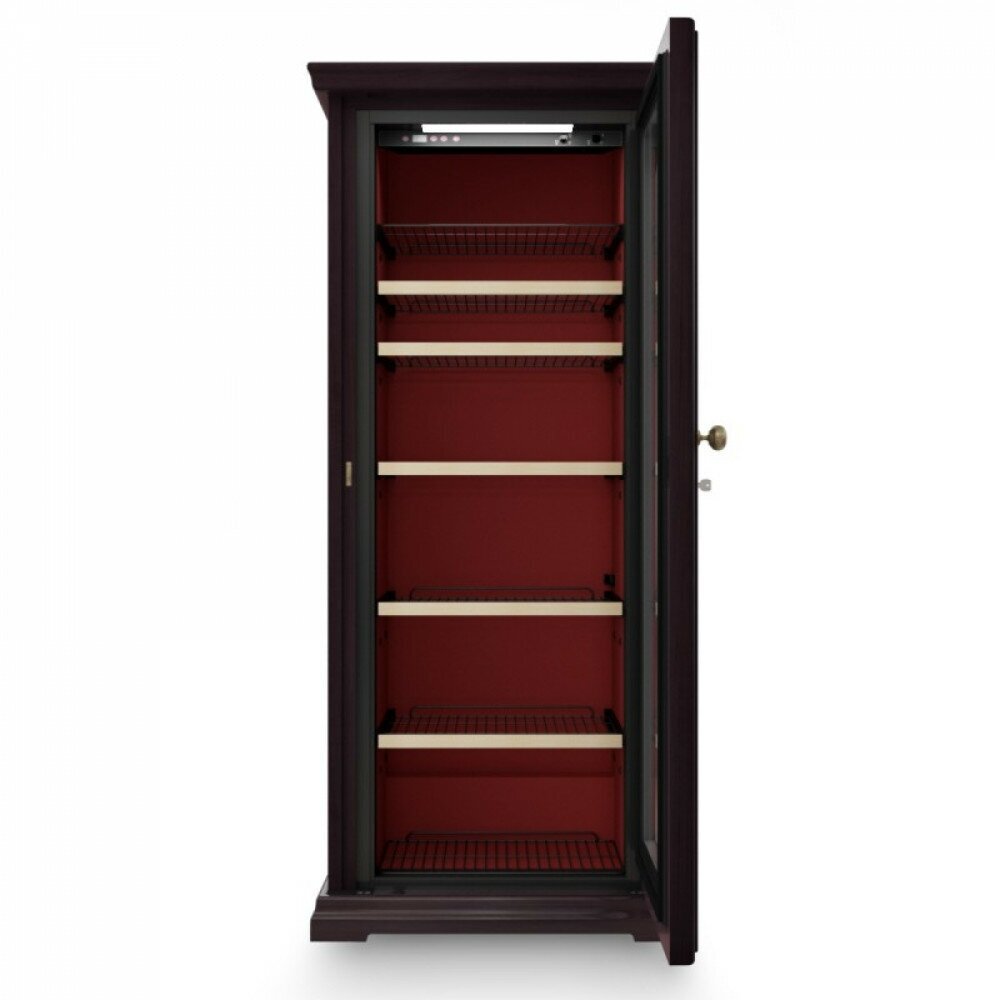 Wine cabinet type: single temperature, height: 175 cm, width: 76 cm, depth: 64 cm, wine cabinet capacity, bottles: 112, number of chambers: 1, compressor type: standard, case color: woodgrain