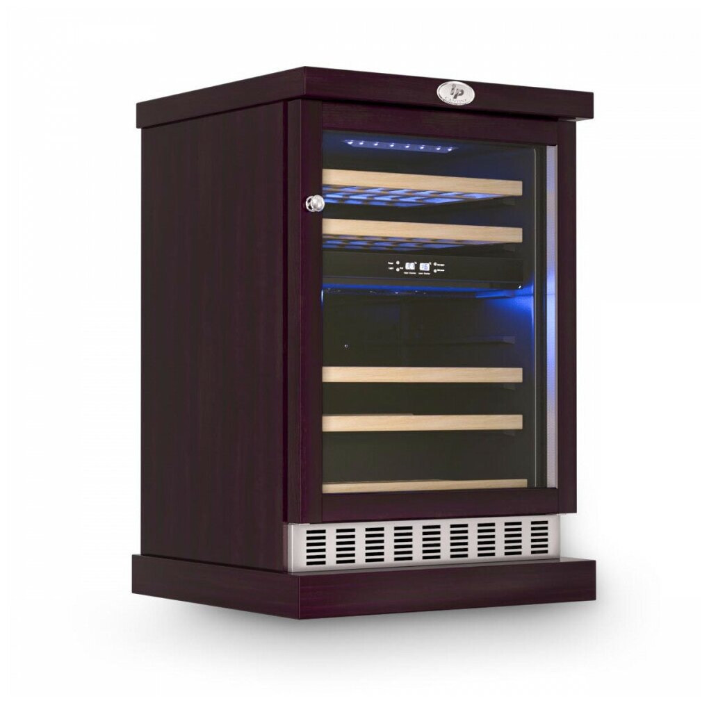 Wine cabinet type: two-temperature, height: 98 cm, width: 59.30 cm, depth: 67 cm, wine cabinet capacity, bottles: 46, number of chambers: 1, compressor type: standard, case color: woodgrain