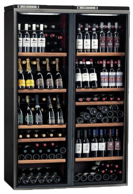 Wine cabinet type: two-temperature, height: 153 cm, width: 122 cm, depth: 61 cm, wine cabinet capacity, bottles: 196, number of chambers: 2, compressor type: standard, housing color: black