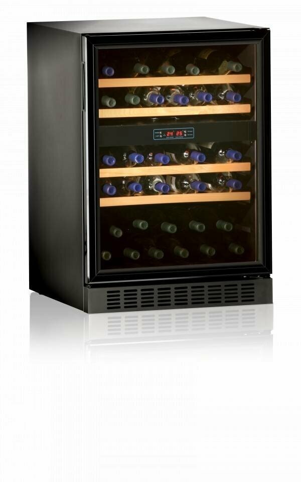 Wine cabinet type: two-temperature, height: 82 cm, width: 59.50 cm, depth: 56 cm, wine cabinet capacity, bottles: 45, number of chambers: 1, compressor type: standard, housing color: black