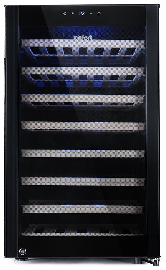Wine cabinet type: single temperature, height: 84 cm, width: 49.50 cm, depth: 57.70 cm, wine cabinet capacity, bottles: 55, number of chambers: 1, energy efficiency class: B, cabinet color: black