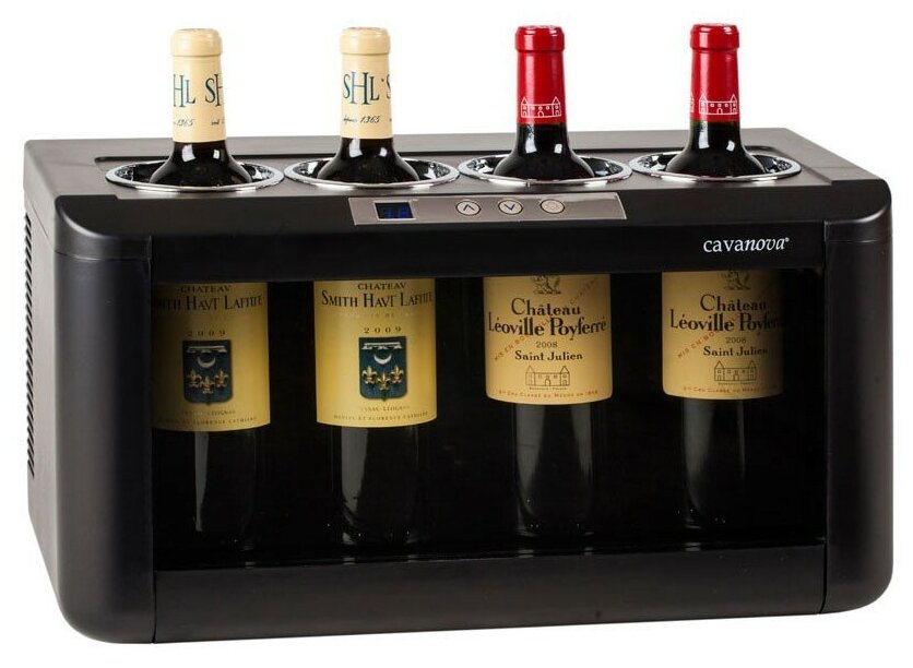 Wine cabinet type: single temperature, height: 28 cm, width: 48 cm, depth: 26 cm, wine cabinet capacity, bottles: 4, number of chambers: 1, compressor type: standard, housing color: black