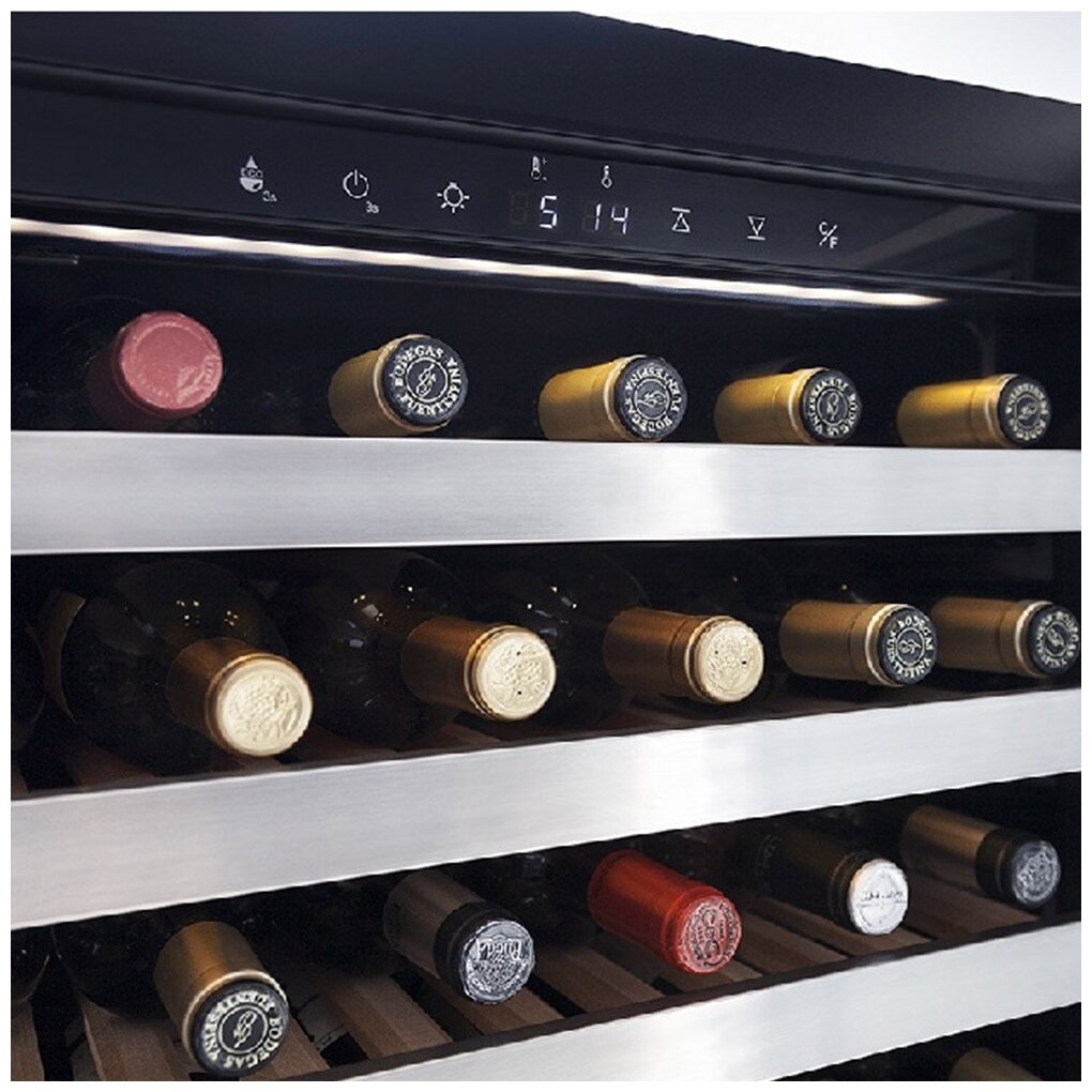 Wine cabinet type: two-temperature, height: 172.50 cm, width: 59.50 cm, depth: 71 cm, wine cabinet capacity, bottles: 152, number of chambers: 1, compressor type: standard, housing color: black