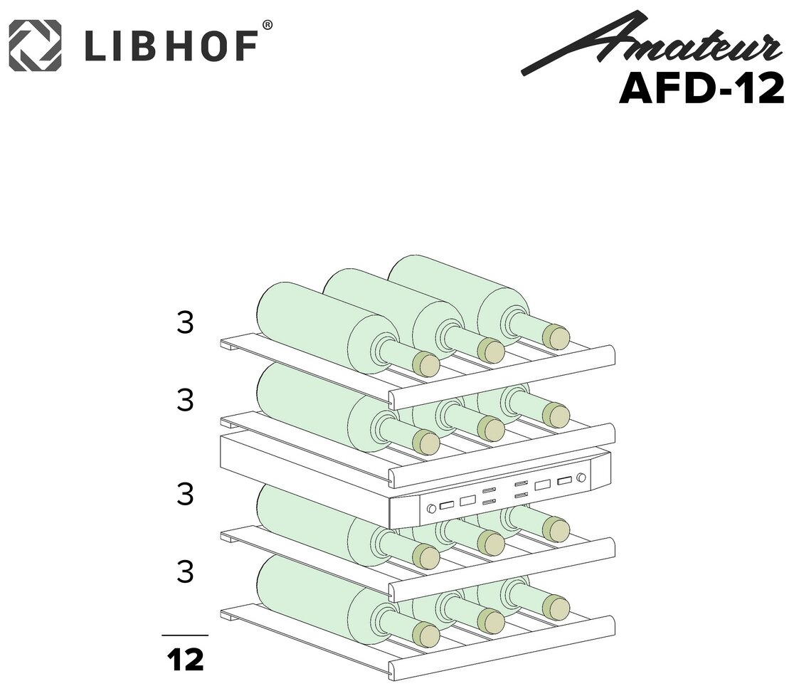 Wine cabinet type: two-temperature, height: 53.40 cm, width: 34 cm, depth: 51 cm, wine cabinet capacity, bottles: 12, number of chambers: 1, energy efficiency class: B, cabinet color: silver