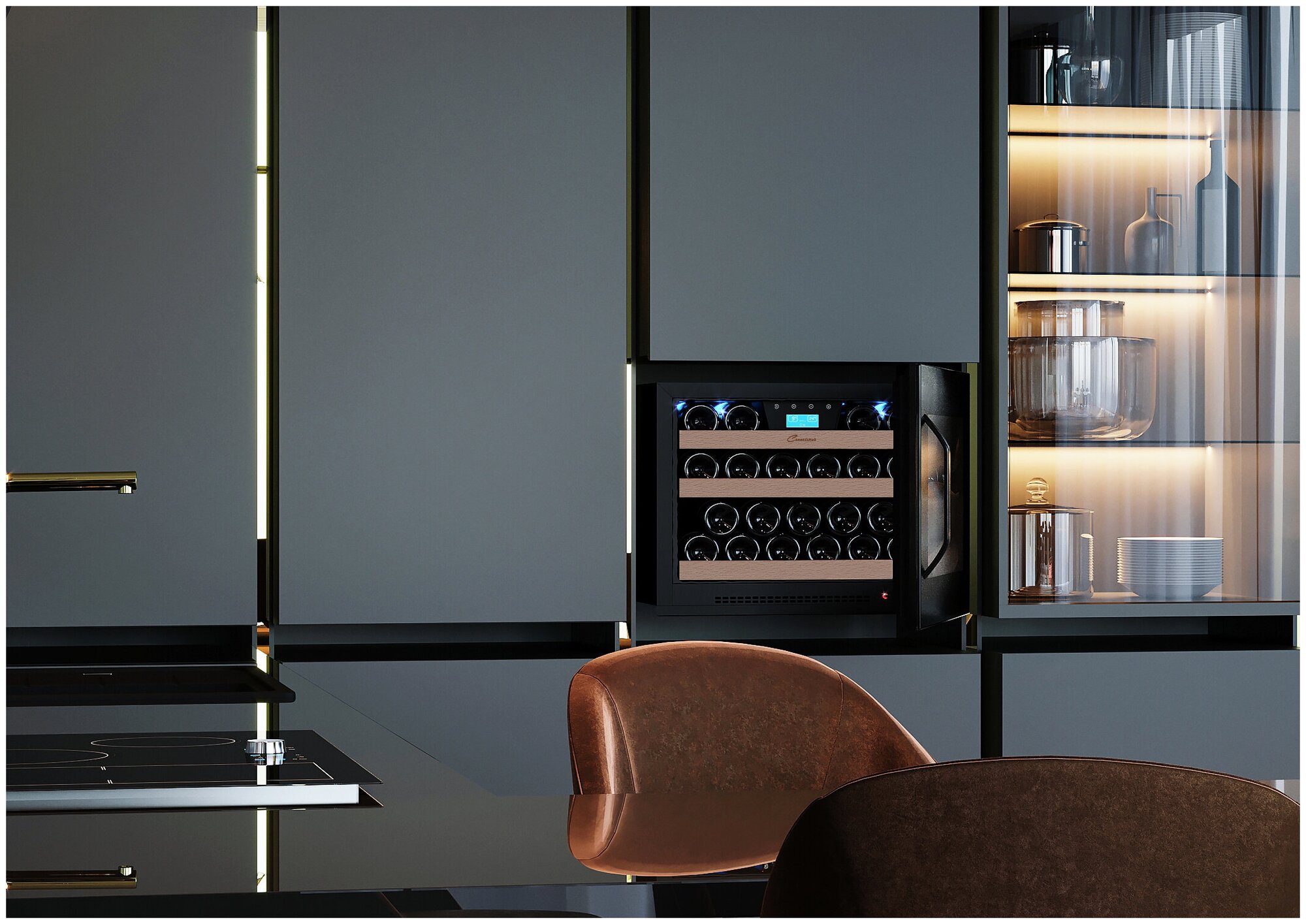 Built-in wine cabinet, 53l, 1-chamber, 59.4x56x45.6cm, black