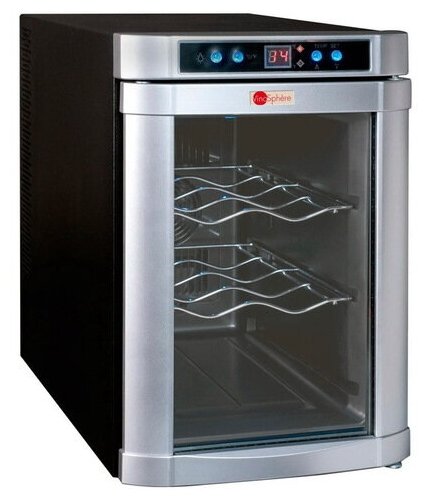 Wine cabinet type: single temperature, height: 40.50 cm, width: 28 cm, depth: 49.50 cm, wine cabinet capacity, bottles: 6, number of chambers: 1, compressor type: standard, housing color: black