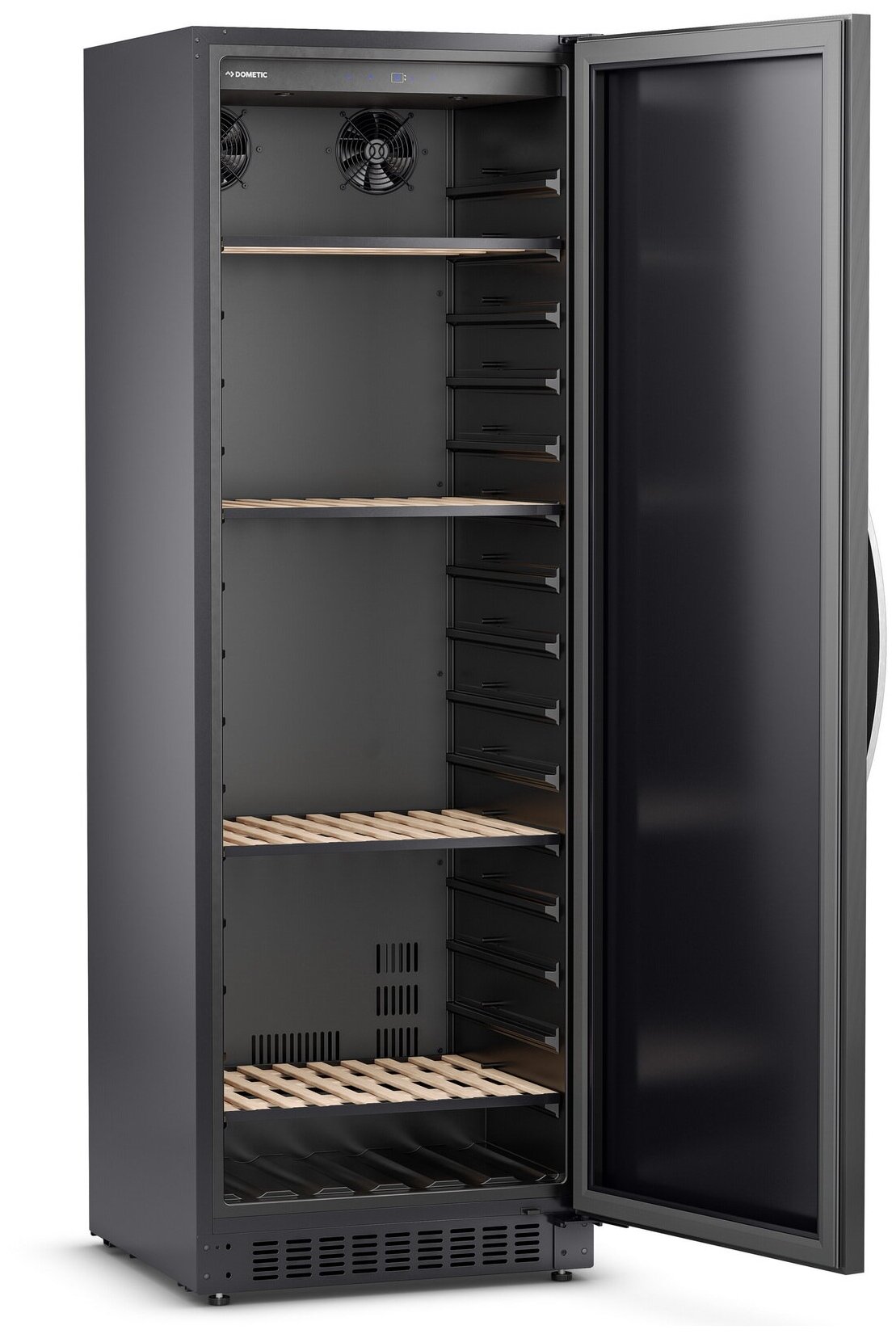 Wine cabinet type: single temperature, height: 176.80 cm, width: 59.50 cm, depth: 57.50 cm, wine cabinet capacity, bottles: 195, number of chambers: 1, energy efficiency class: A+, cabinet color: black