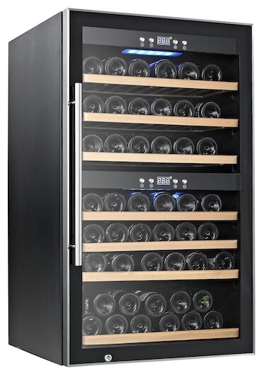 Wine cabinet type: two-temperature, height: 102 cm, width: 59.50 cm, depth: 58 cm, wine cabinet capacity, bottles: 66, number of chambers: 1, compressor type: standard, housing color: black