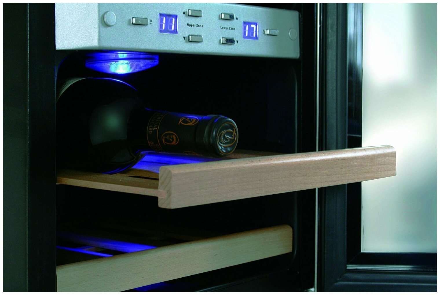 Wine cabinet type: dual temperature, height: 52.50 cm, width: 34.50 cm, depth: 51 cm, wine cabinet capacity, bottles: 12, number of chambers: 1, energy class: D, compressor type: standard, body color: silver